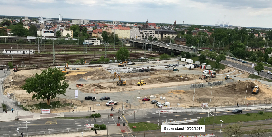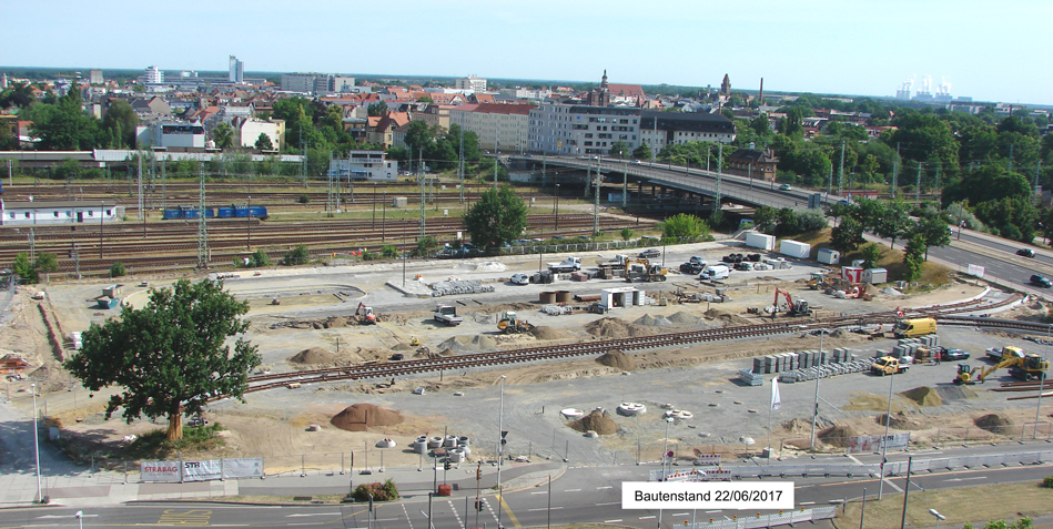 Derzeit ist ARCUS mit der örtlichen Bauüberwachung für die Ostseite des Bahnhofvorplatzes und der Gesamtkoordination der Baumaßnahmen beauftragt. Wir begleiten in dem Leistungsumfang der örtlichen Bauüberwachung die Bauleistungen für die wesentlichen Baulose. In unserem Koordinierungsumfang sind darüber hinaus neben den Ingenieurbauwerken der LWG, die u. a. einen groß dimensionierten Regenwasserstaukanal unter dem Platz errichtet, alle Verkehrsanlagen eingeschlossen. Zu diesen gehören der neu zu schaffende zentralen Busbahnhof, die Straßenbahnhaltestellen, die Taxistellplätze, Kurzzeitparkplätze für PKW (Kiss + Ride – Anlagen), 260 Fahrradstellplätze sowie die Gleisanlagen der Straßenbahn.