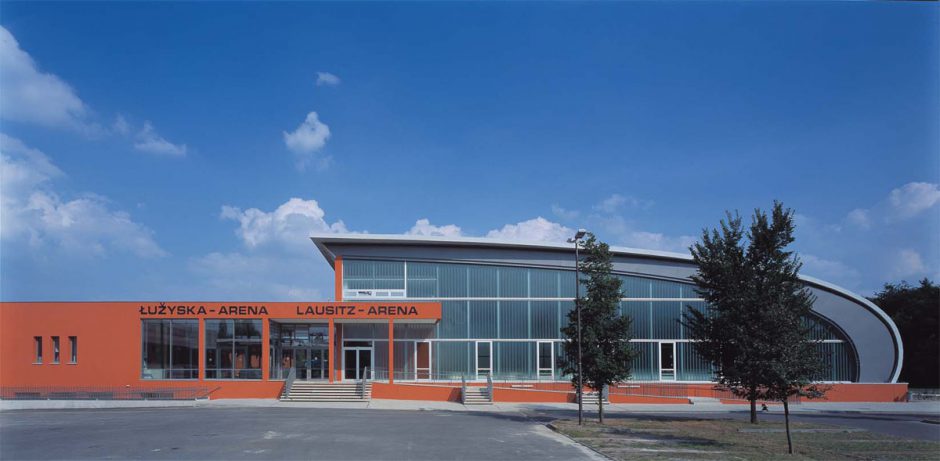 Die Lausitz Arena ist in 3 miteinander verbundene Funktionszonen unterteilt: den Drei-Feld-Pavillon mit Tribünen für Besucher, den Zwei-Feld-Pavillon als Schulungs- und Heizungsbereich und die Halle mit Forum. Zurück