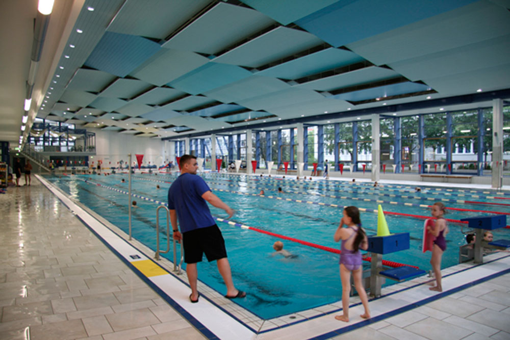 Im Herzen des Berliner Stadtbezirks Marzahn gelegen, ist die Schwimmhalle als Pilotprojekt für energetische Sanierung über das Niveau der Energieeinsparverordnung (EnEV) hinaus ertüchtigt und gleichzeitig attraktiviert worden. Als besonders anspruchsvoll bzgl. der Sanierung des Mitte der 80er Jahre errichteten Hallenbades erwiesen sich u.a. die HP-Dachschalenträger, für die innovative Sanierungskonzepte entwickelt wurden. Die sanierte Schwimmhalle wurde mit dem begehrten „Public Award“ der Gesellschaft für das Badewesen für Konzept und Betrieb geehrt.